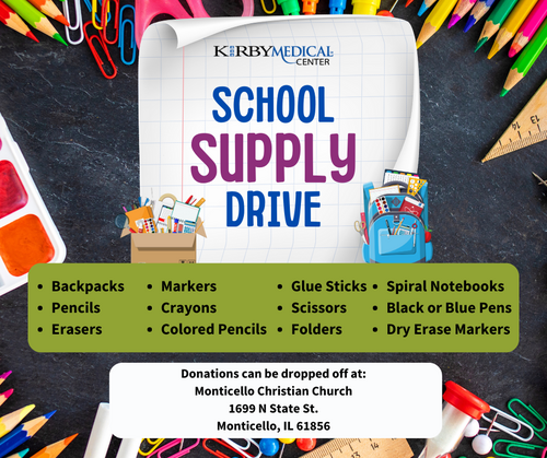 This is the last week to bring in school supplies! We are thankful to have been in partnership with Kirby Medical Center to help support Piatt County students. Donations can be dropped off at MCC until this Sunday, July 21st.